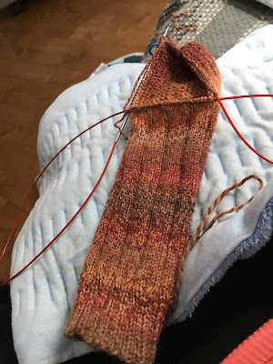 I cut the added sheets for signature 2 of the journal down to size yesterday and I am ready to start work on it. I have one page to print and colour and then decide on what I will do to attach it to its page. I am mentally ready to start.Knitting