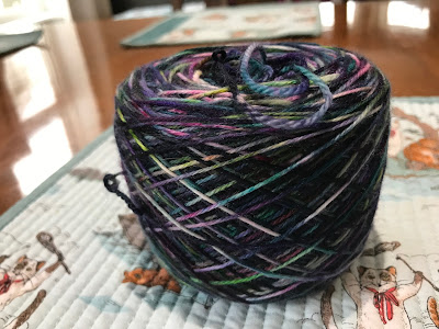 I wound the skein of yarn before lunch and admired it while I ate my lunch. I love the colours in it.