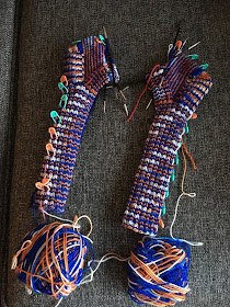It is knitting at the library so I will work on the socks while I am there. I am at mindless knitting now so I can knit in public. In the afternoon, I will pin the pattern onto the Spousal Unit's shirt in preparation to cut it out. With so many pieces cut out on the bias, it will take time to get it right. The left over fabric will be for the dolls. No waste here.Until the next time......................